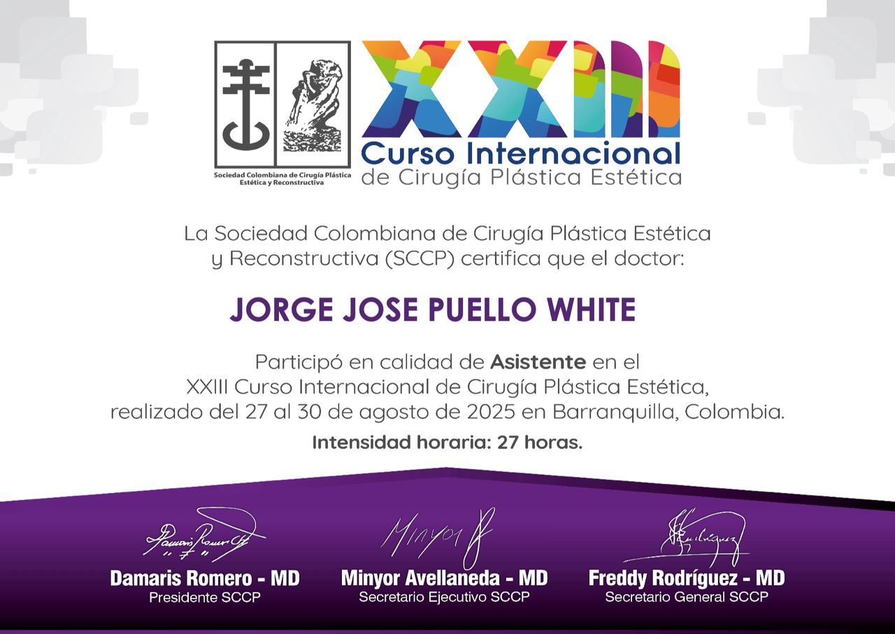 Soy el Dr. Jorge Puello White, cirujano plástico, estético y reconstructivo en Colombia, con atención en Bogotá y Cartagena . Mi práctica se enfoca en cirugía mamaria y contorno corporal, con un objetivo claro: lograr resultados naturales, armónicos y seguros, mediante una valoración completa, planeación quirúrgica individualizada y acompañamiento continuo antes y después del procedimiento.